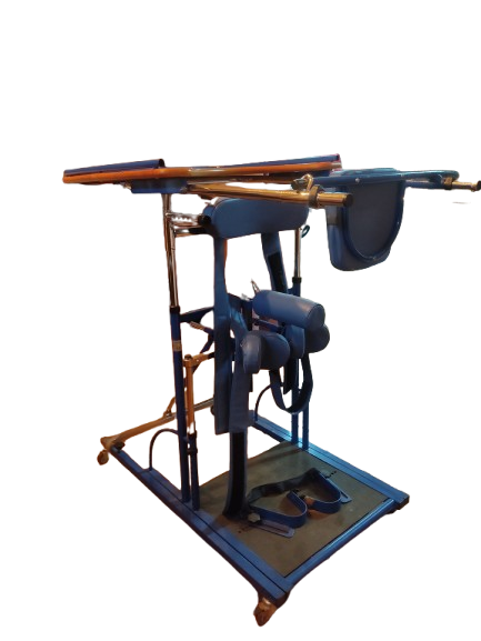 - Equipo diseñado para colocar al paciente en posición de pie de forma progresiva y segura, ideal para: Rehabilitación neurológica Pacientes con lesión medular Ictus Parálisis cerebral Trabajo postural y de carga Mejora de la circulación y tono muscular Dispone de: Arnés y sujeciones acolchadas regulables Apoyos de rodilla, cadera y tronco Estructura metálica muy robusta y estable Sistema de regulación manual sencillo y seguro Base con ruedas para facilitar el desplazamiento