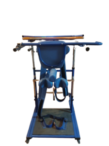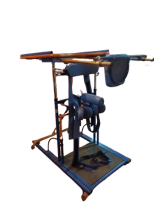 - Equipo diseñado para colocar al paciente en posición de pie de forma progresiva y segura, ideal para: Rehabilitación neurológica Pacientes con lesión medular Ictus Parálisis cerebral Trabajo postural y de carga Mejora de la circulación y tono muscular Dispone de: Arnés y sujeciones acolchadas regulables Apoyos de rodilla, cadera y tronco Estructura metálica muy robusta y estable Sistema de regulación manual sencillo y seguro Base con ruedas para facilitar el desplazamiento