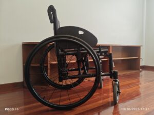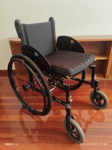 Silla de ruedas autopropulsada. Asiento de 40×40 cm. Tres años de uso intermitente, muy cuidada.