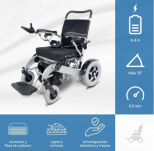 Silla de ruedas eléctrica Mobiclinic Troya Plus Ultra, diseñada para ofrecer seguridad y resistencia.
