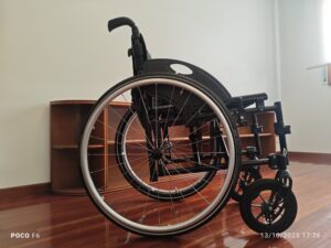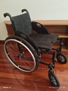 Silla autopropulsable y plegable. Tiene menos de dos años y está muy cuidada.